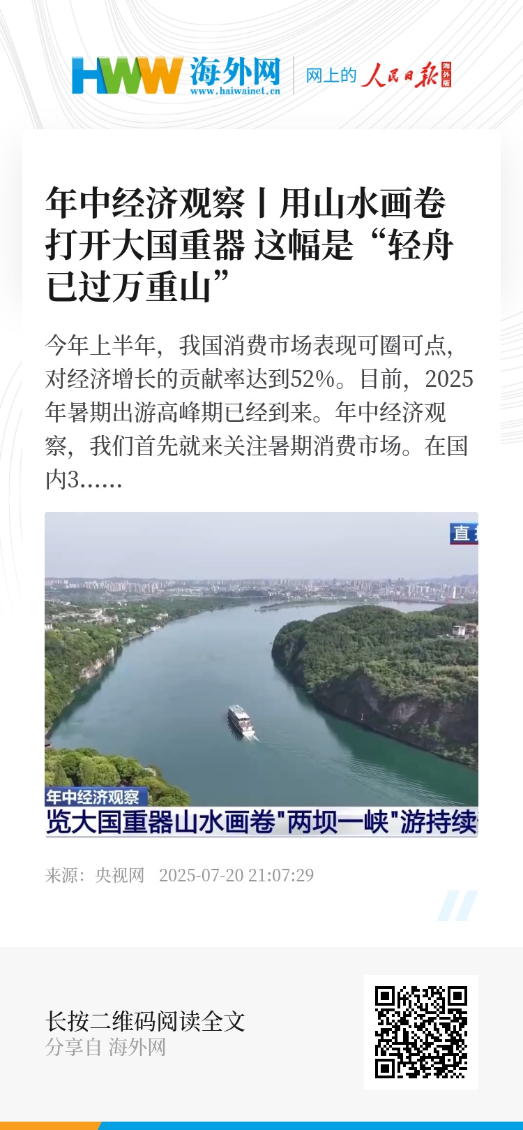 今年上半年,我国消费市场表现可圈可点,对经济增长的贡献率达到52%。目前,2025年暑期出游高峰期已经到来。年中经济观察,我们首先就来关注暑期消费市场。