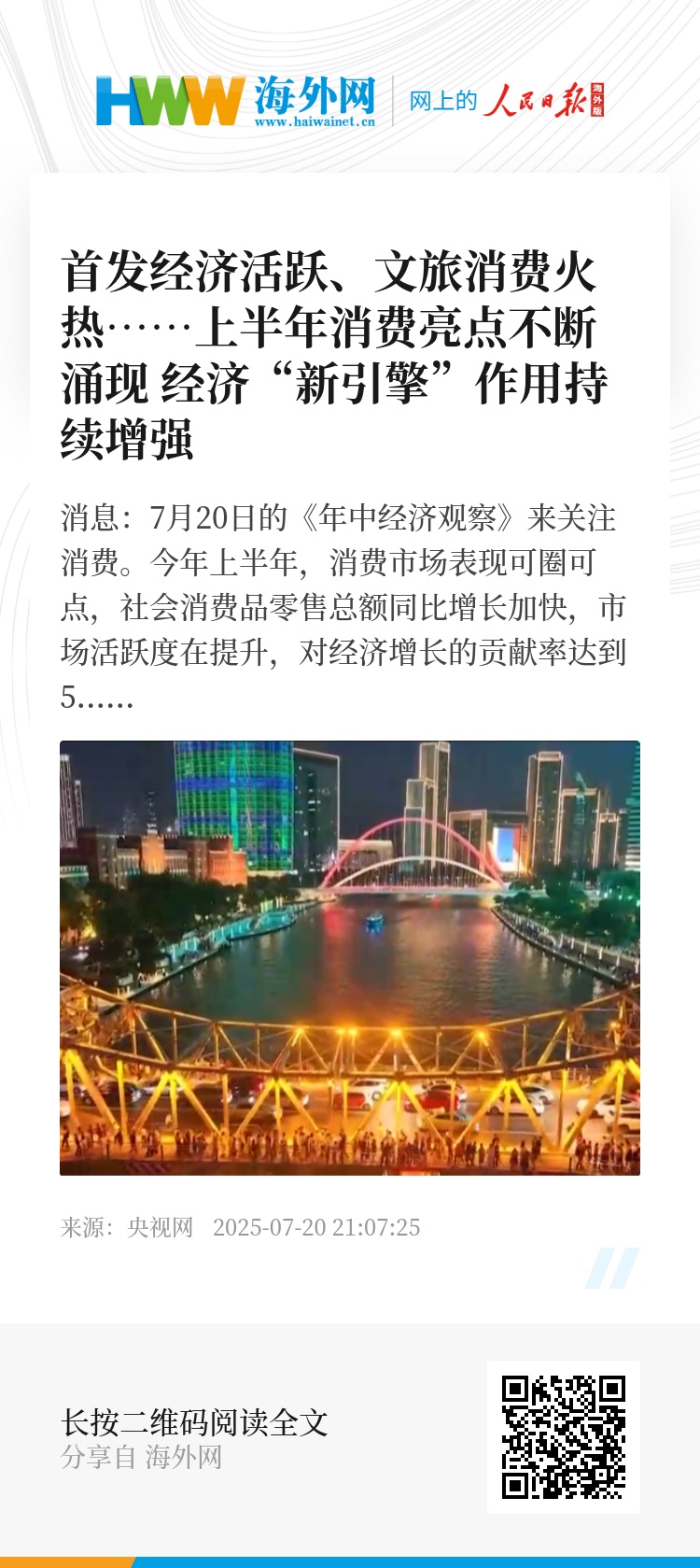 今年上半年,商品消费平稳增长,服务消费加快,消费结构中服务消费的占比在提升。特别是假日消费拉动作用增强,与此相关的文体休闲、交通出行服务消费都保持两位数增长。人们的出行半径越走越长,新的消费体验也日益丰富。让我们一起打开“交旅融合”地图。