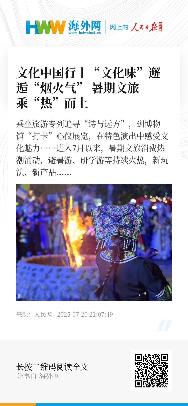 今年暑期,“烟火气”和“文化味”交织碰撞,一系列“夏日限定”活动拉动消费新潮,让游客在领略自然之美中感悟文化之美、陶冶心灵之美。