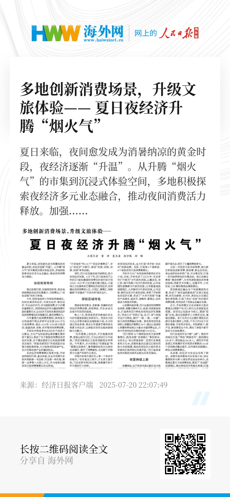 夏日来临,夜间愈发成为消暑纳凉的黄金时段,夜经济逐渐“升温”。从升腾“烟火气”的市集到沉浸式体验空间,多地积极探索夜经济多元业态融合,推动夜间消费活力释放。
