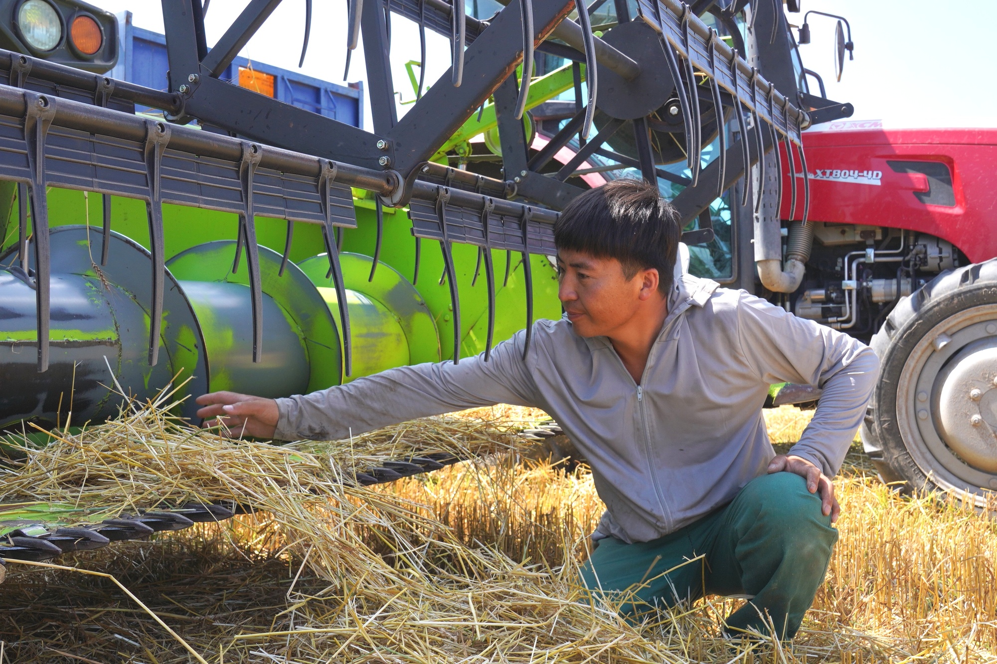 机械化收割小冰麦 (央广网发 潘晟昱 摄)