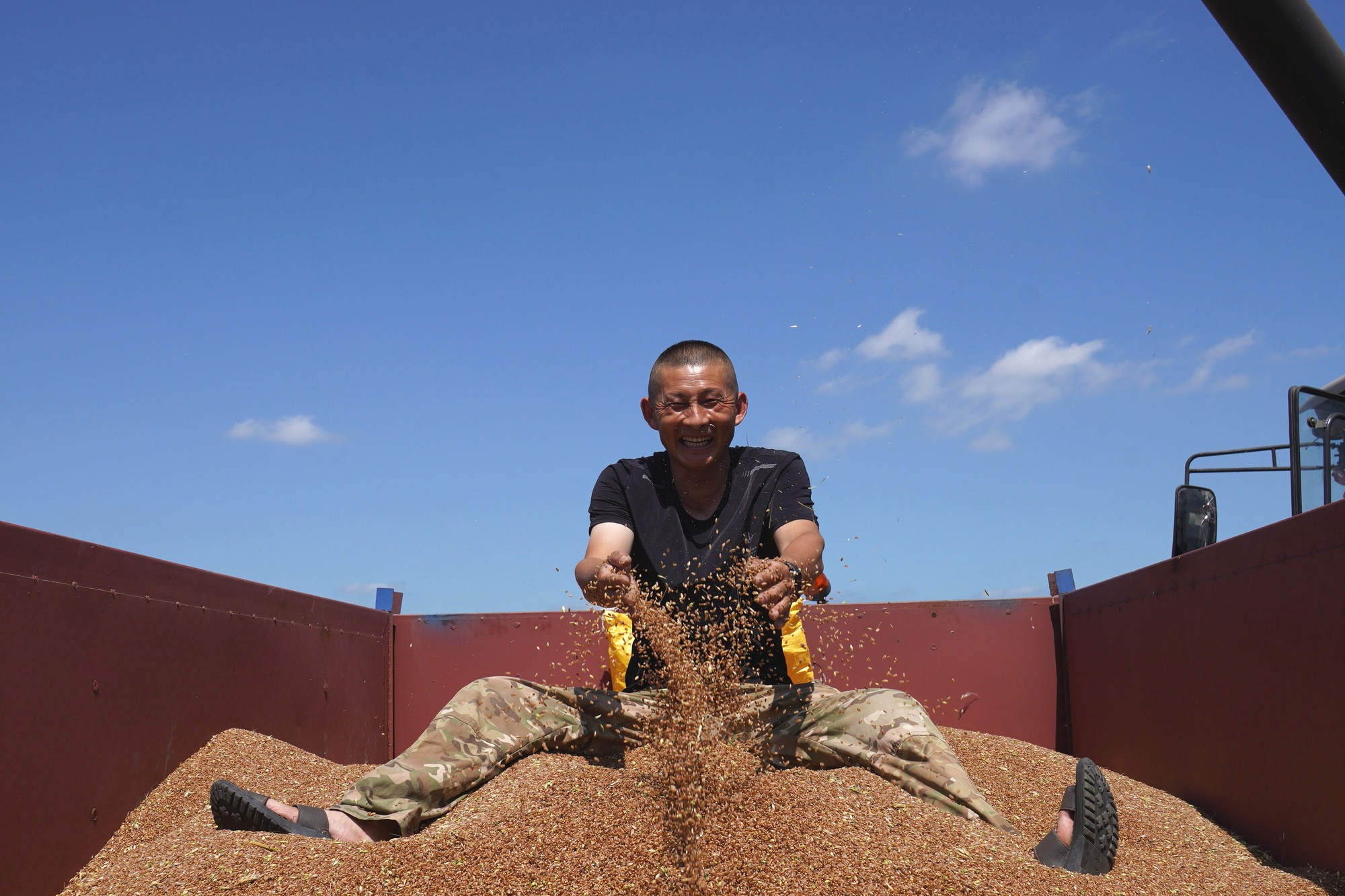 7月12日,镇赉南岗子村小冰麦示范区内已率先收割。收割机穿梭田间,金色麦秆卷入机器,饱满麦粒倾泻而出,种植户们笑逐颜开。作为当地小冰麦“产量提升工程示范区”,这片田地正以喜人的景象,为全县的丰收季添上浓墨重彩的一笔。