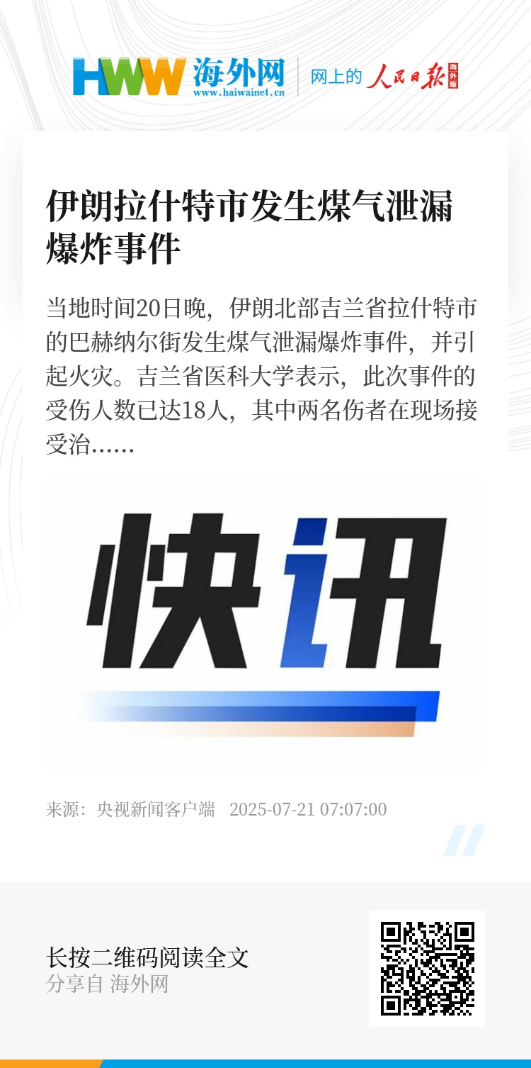 当地时间20日晚,伊朗北部吉兰省拉什特市的巴赫纳尔街发生煤气泄漏爆炸事件,并引起火灾。吉兰省医科大学表示,此次事件的受伤人数已达18人,其中两名伤者在现场接受治疗,另外16名伤者被送往当地医院治疗。