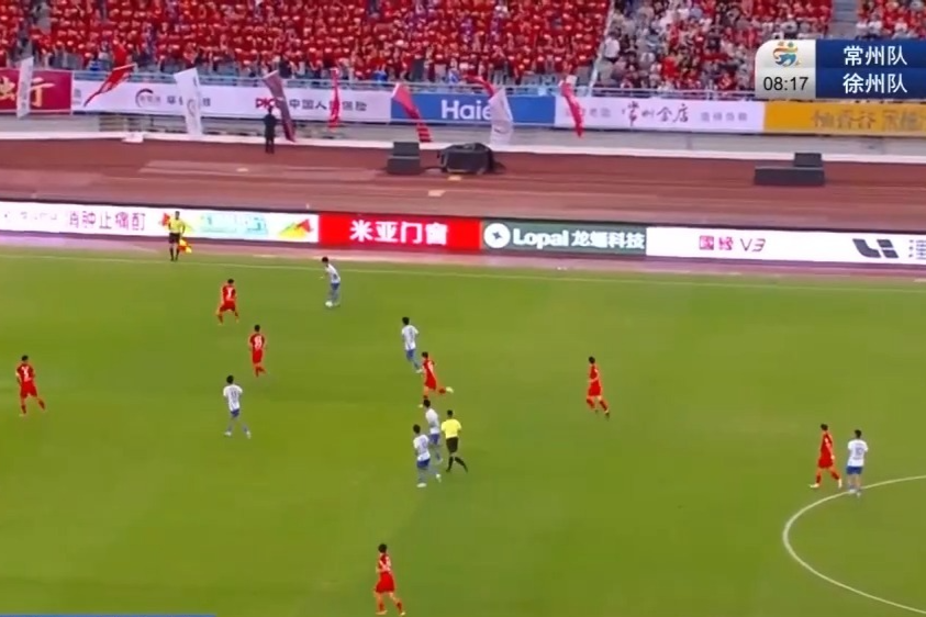 昨天是入伏的第一天,除了35℃的酷暑,身穿白色球衣的徐州队也给常州队带来了严峻的“烤”验。开场不到十分钟,常州队就丢球了。徐州队前锋段飞达一个加速过掉对手,倒三角传中将球送至赵子杰脚下,后者一蹴而就。