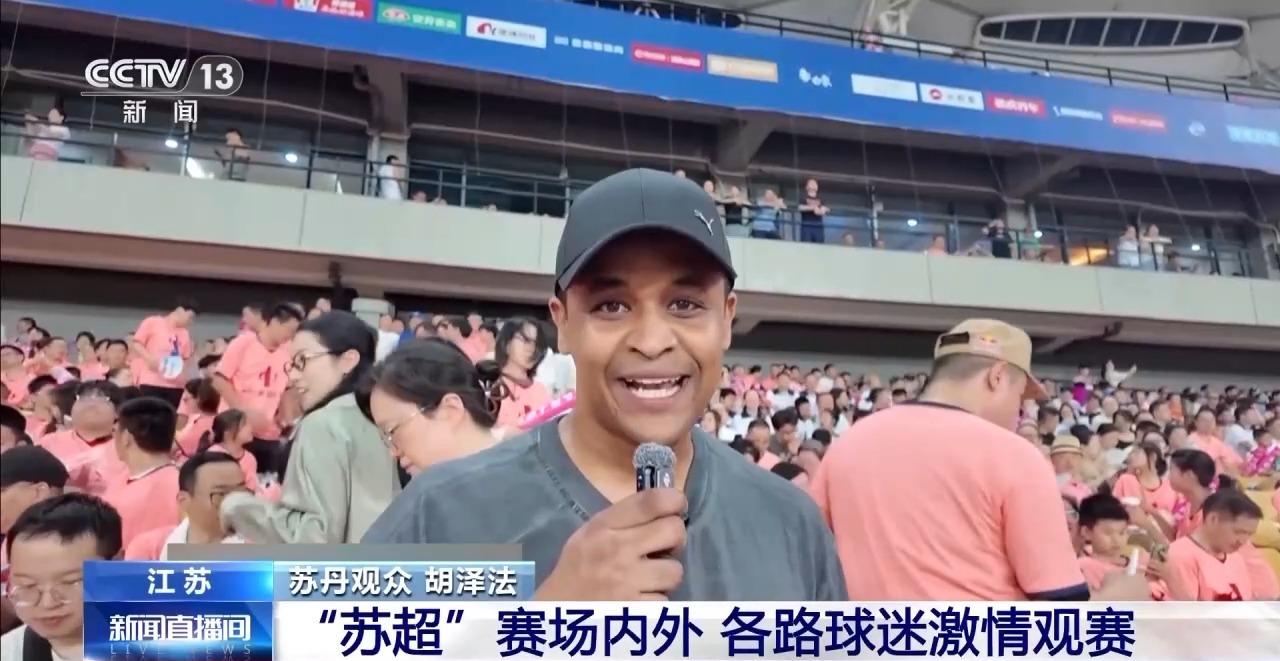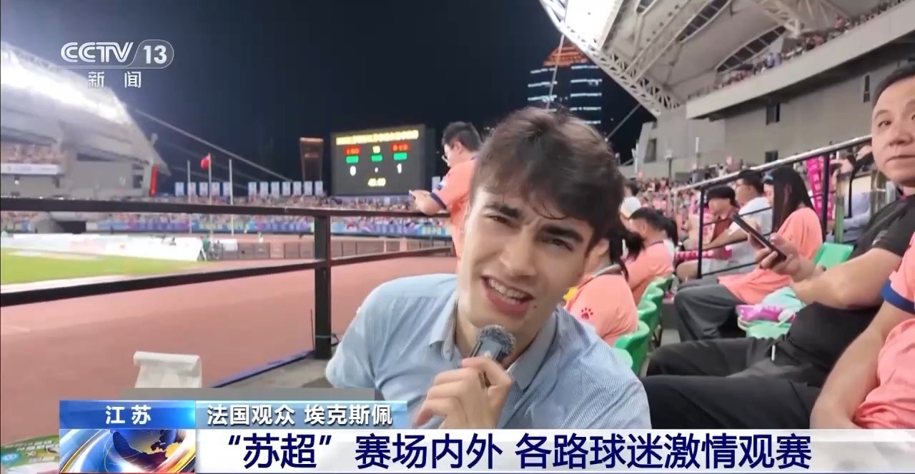 “凤凰班”学生 法依勒·叶尔努尔:之前在手机上观看“苏超”,今天亲临现场,我非常荣幸也非常自豪坐在这里,观看泰州对宿迁的比赛。
