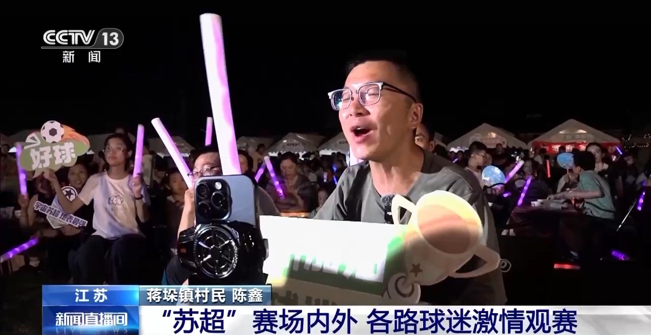 蒋垛镇村民 陈鑫:尽管苏超门票一票难求,但是我们蒋垛人热情不减。我们齐聚在村口为苏超喝彩,为泰州加油。泰州队,加油!