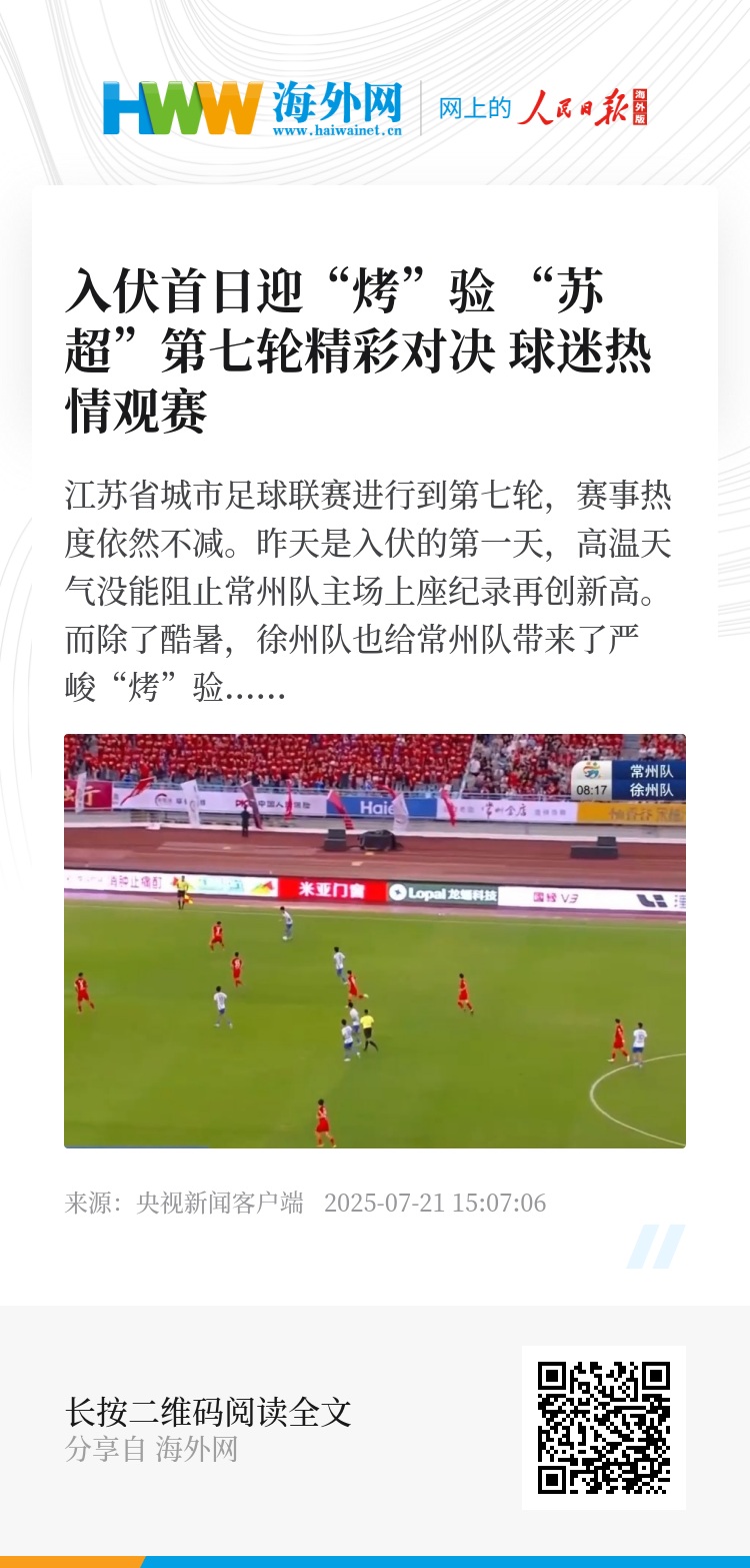 此外,苏超“南哥”之争还在继续,南京队客场以5比1击败扬州队,积分榜名列第二,排名紧追南通队。苏超下一轮比赛,将于八月二日展开较量。