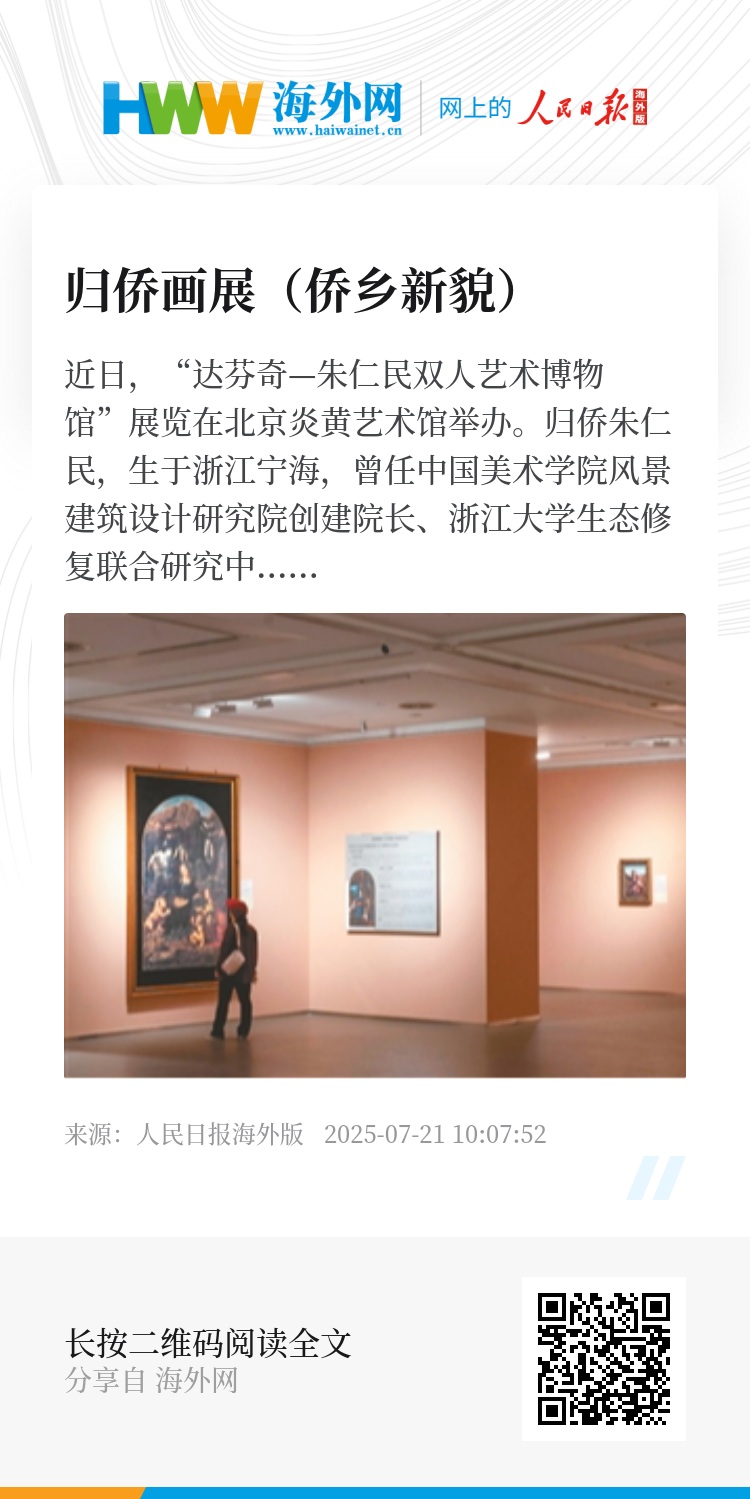 归侨朱仁民,生于浙江宁海,曾任中国美术学院风景建筑设计研究院创建院长、浙江大学生态修复联合研究中心创建主任、意大利国家国际美术家协会名誉主席等职务。
