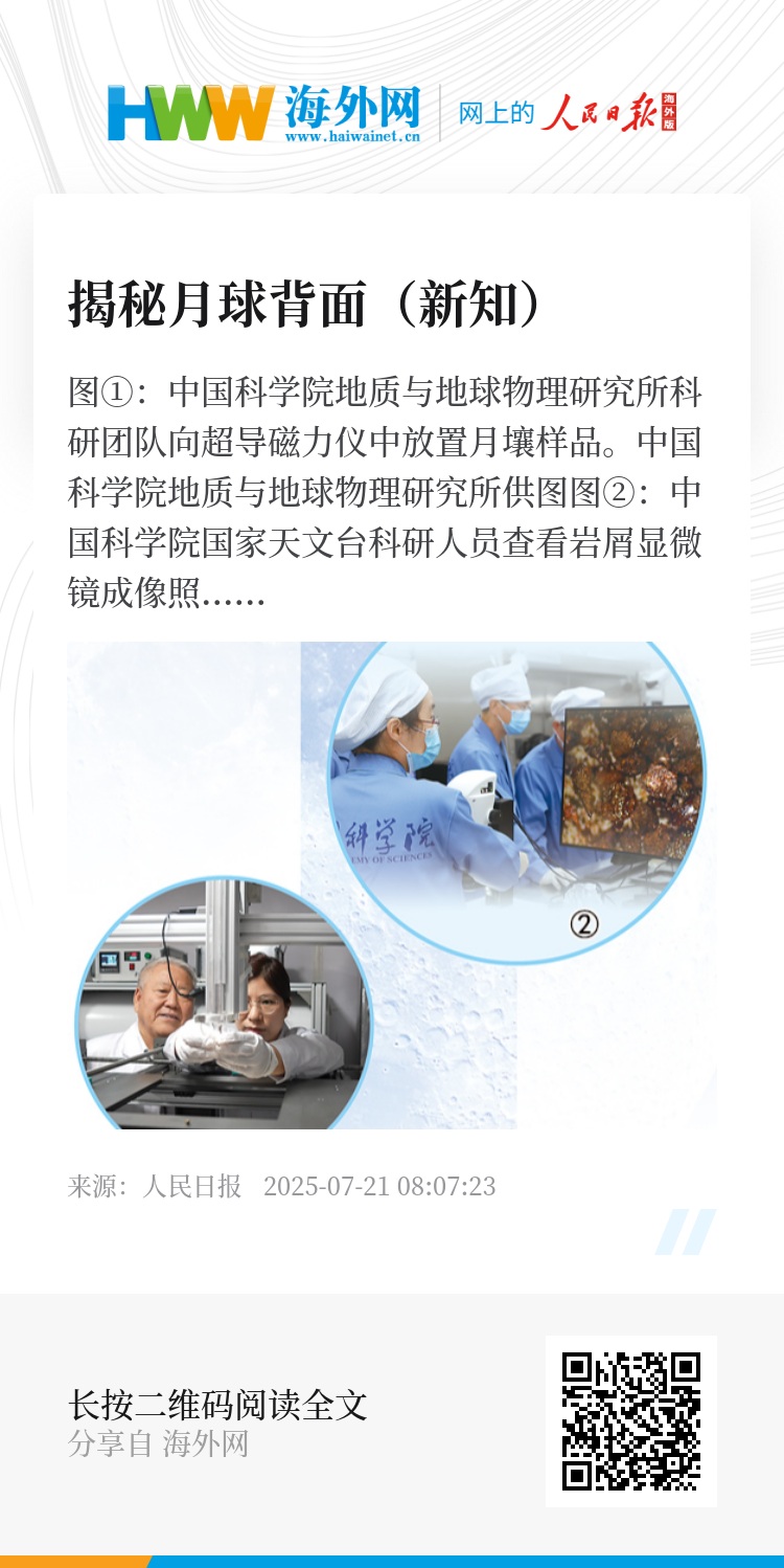 此前,科学界对于月背的认识主要基于遥感研究。“如今我国科学家从嫦娥六号月球样品中获得的一系列重要发现,正不断颠覆和刷新人类对月球的认知。”中国科学院院士王赤说。