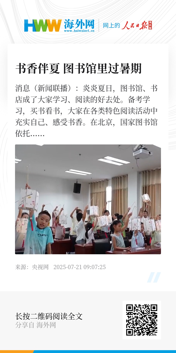 央视网消息(新闻联播):炎炎夏日,图书馆、书店成了大家学习、阅读的好去处。备考学习,买书看书,大家在各类特色阅读活动中充实自己、感受书香。