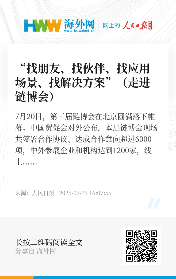 7月20日,第三届链博会在北京圆满落下帷幕。中国贸促会对外公布,本届链博会现场共签署合作协议、达成合作意向超过6000项,中外参展企业和机构达到1200家,线上线下观众人数超过21万人次,比上届增长5%。