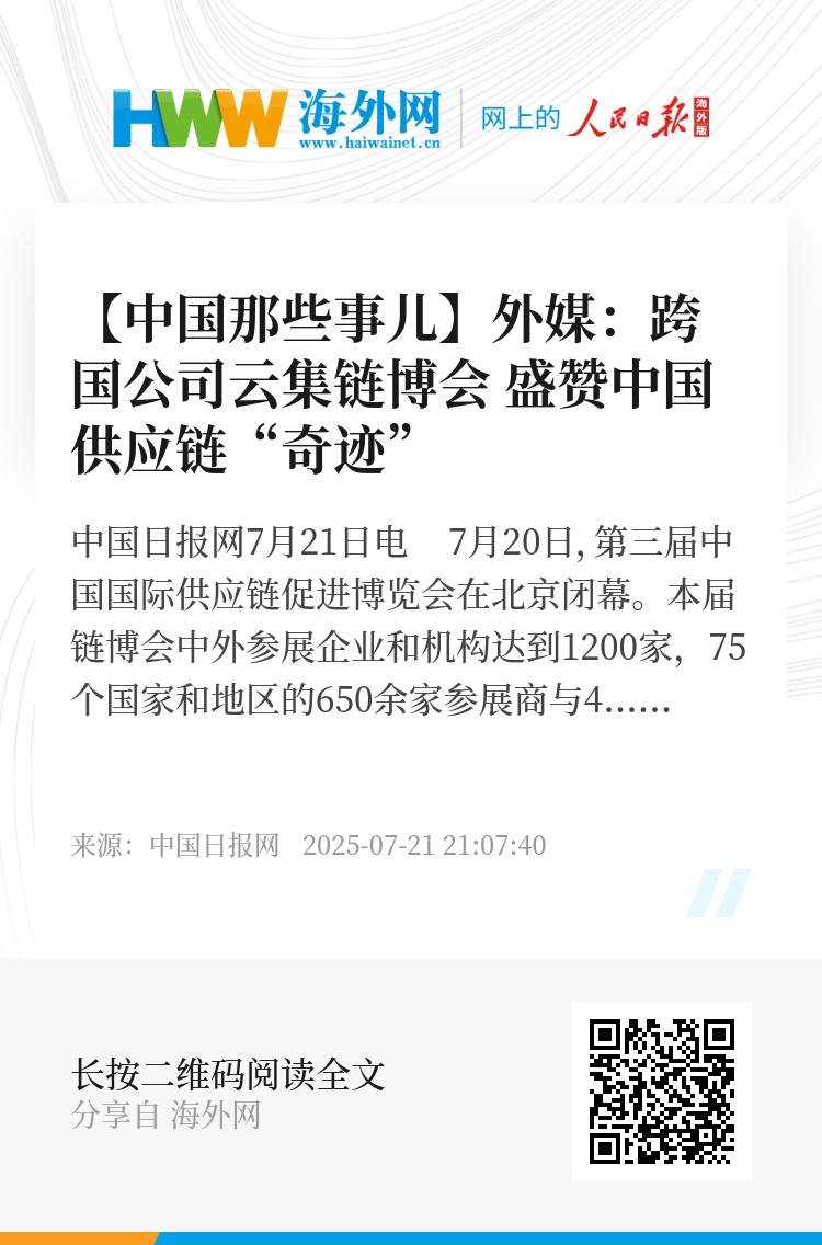 参加第三届链博会的外企代表认为,中国的供应链正在超越简单的连接,更加注重协调、发展和创新。随着技术创新在中国供应链中扮演越来越重要的角色,外国企业在高端制造业、现代服务业和消费品领域将与更多中国合作伙伴建立合作关系。