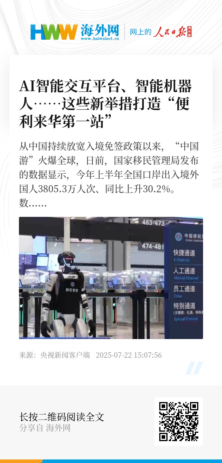 从中国持续放宽入境免签政策以来,“中国游”火爆全球,日前,国家移民管理局发布的数据显示,今年上半年全国口岸出入境外国人3805.3万人次、同比上升30.2%。数据大幅提升的背后是全国各口岸持续打造的入境第一站的系列便利措施。北京的故宫、长城一直是吸引外国人的热门打卡地,为了能让入境外国人在第一站就体验到顺畅和便利,北京在首都、大兴双枢纽机场口岸下了不少功夫。