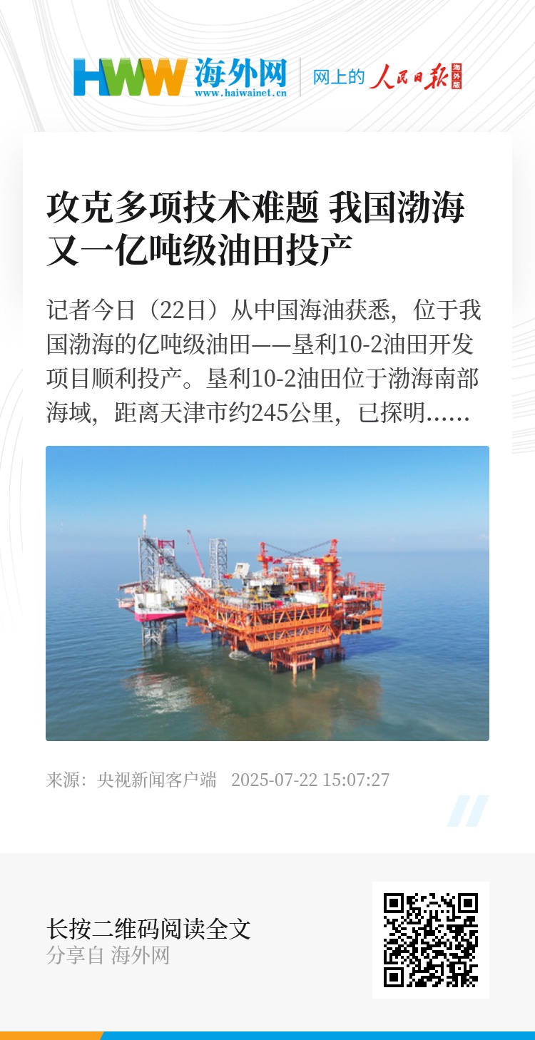 记者今日(22日)从中国海油获悉,位于我国渤海的亿吨级油田——垦利10-2油田开发项目顺利投产。垦利10-2油田位于渤海南部海域,距离天津市约245公里,已探明地质储量超1亿吨。