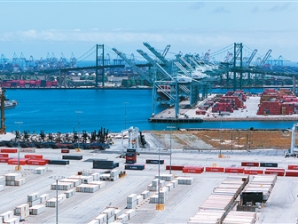 随着美国关税政策对国际贸易的冲击逐步显现,美国最大港口洛杉矶港工作岗位明显减少。图为美国洛杉矶港。