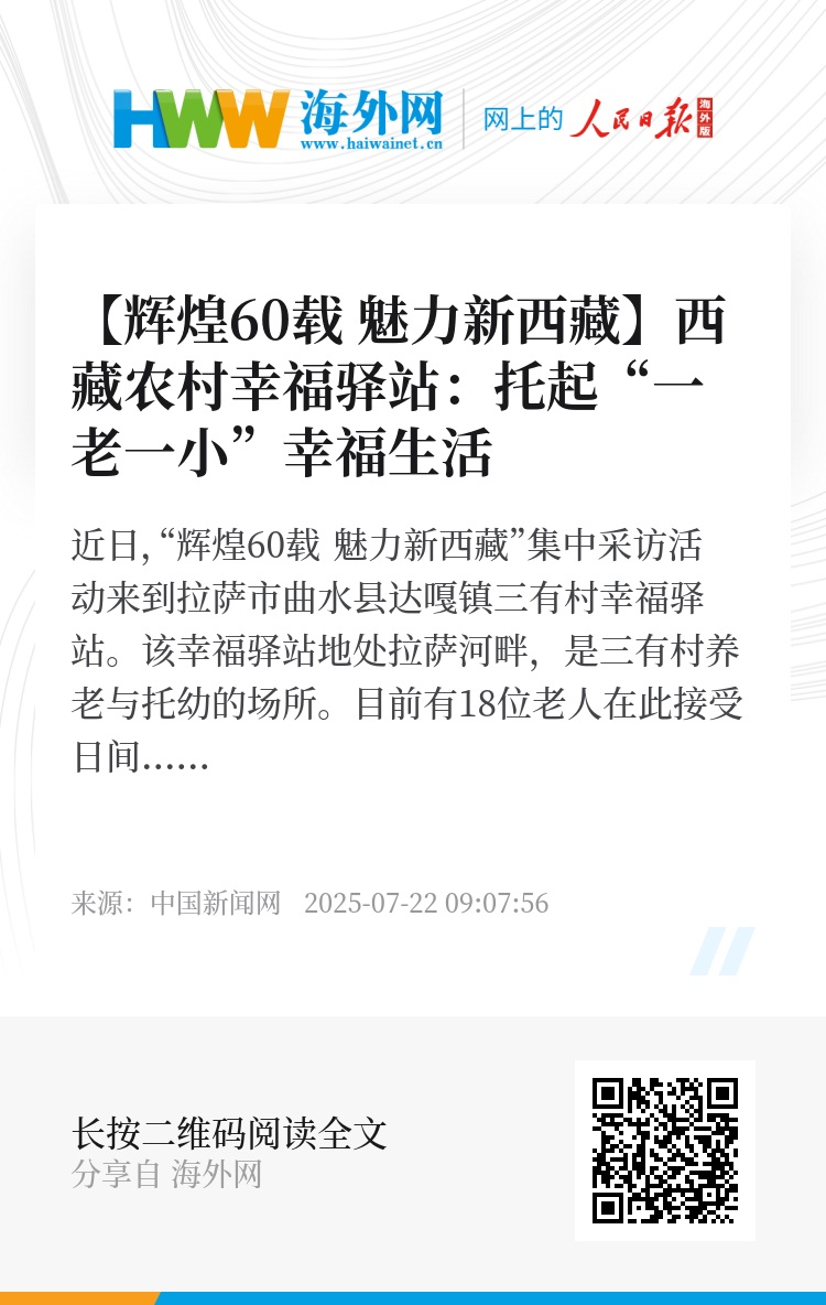 三有村是西藏首个易地扶贫搬迁点。为满足村里养老、年轻人外出就业需求,2020年,村里决定开设养老驿站,为缺乏赡养照护的老人提供日间照料,包括餐食、健康监测、娱乐休闲活动等。2023年,在江苏省援藏资金进一步支持下,养老驿站改扩建为集养老和托幼于一体的幸福驿站。