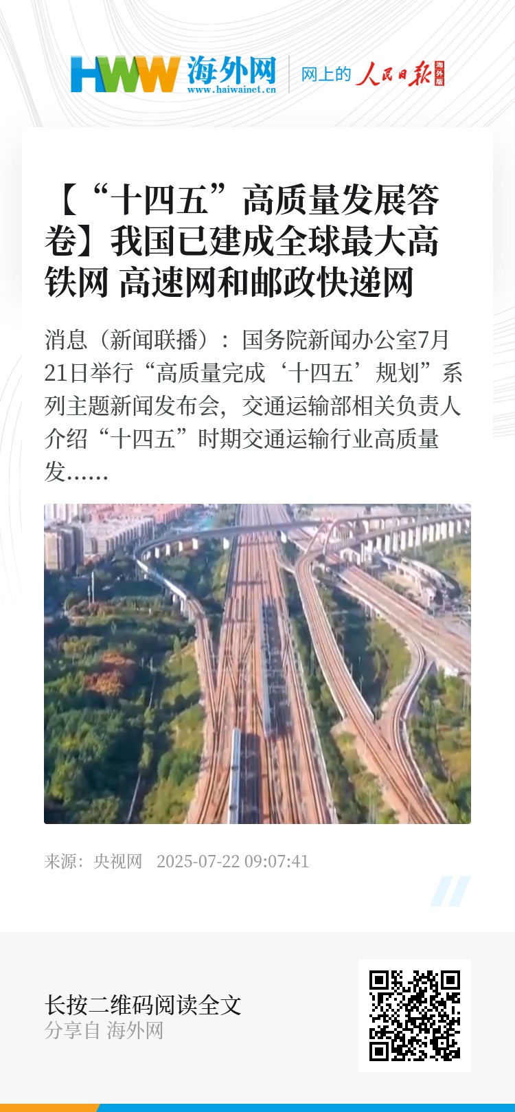 “十四五”交通规划17项主要指标中,高速公路建成里程、城市轨道交通运营里程、建制村快递服务通达率等6项指标在2024年已提前完成。高速铁路营业里程、枢纽机场轨道交通接入率等11项指标年底前将全部完成。