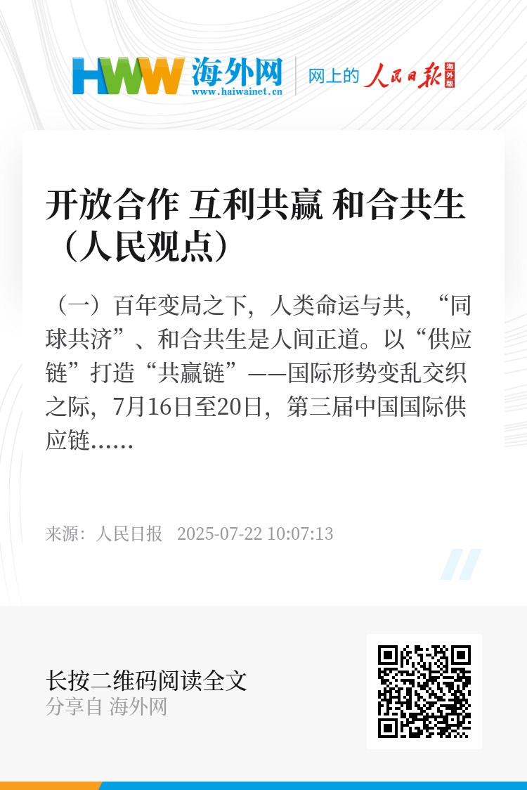经济全球化是历史大势,开放合作是时代潮流,中国坚定践行真正的多边主义,以和合共生的“中国主张”,为全球发展带来新的光明前程。