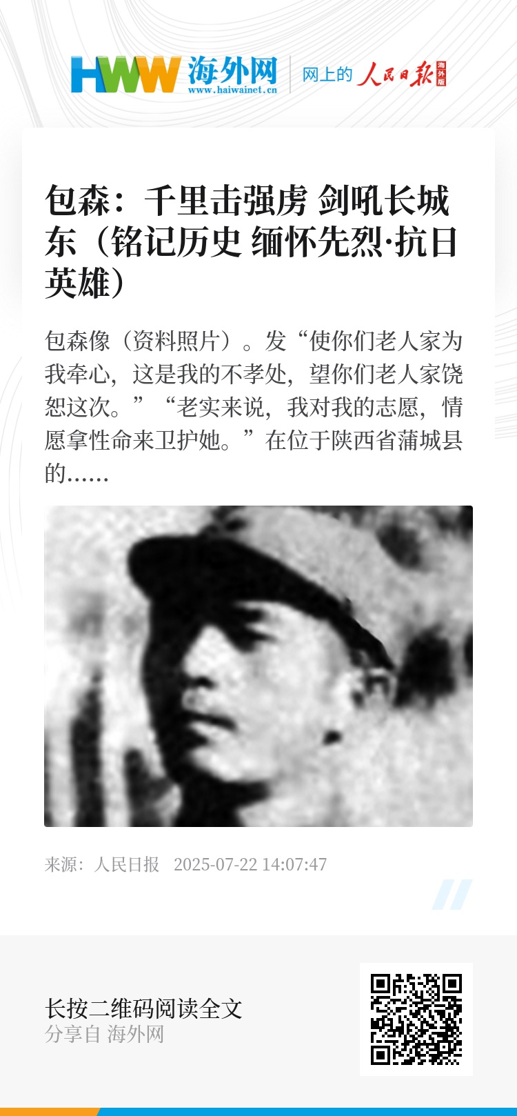 彼时,包森的大名在冀东一带妇孺皆知,人们亲切地称他“包队长”“包司令”“包团长”。而敌人则把他视为克星,伪军们口角,常以“出门打仗碰上老包”为咒。