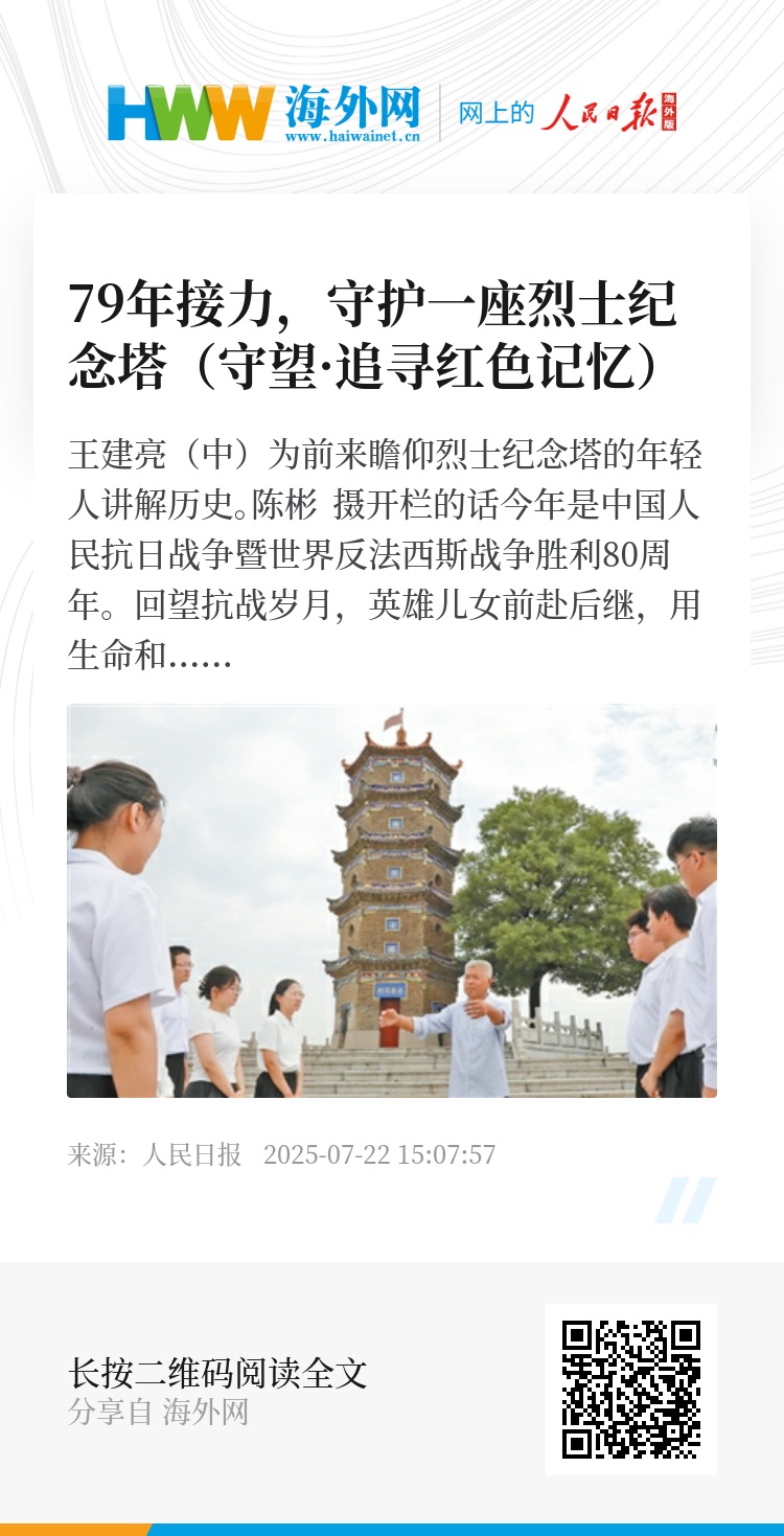 “爷爷,咱为啥非得守着这个塔啊?”小时候,王建亮仰着小脸问过爷爷。爷爷拍拍他的头说:“守塔是为了纪念亲人,更是为了记住历史。”