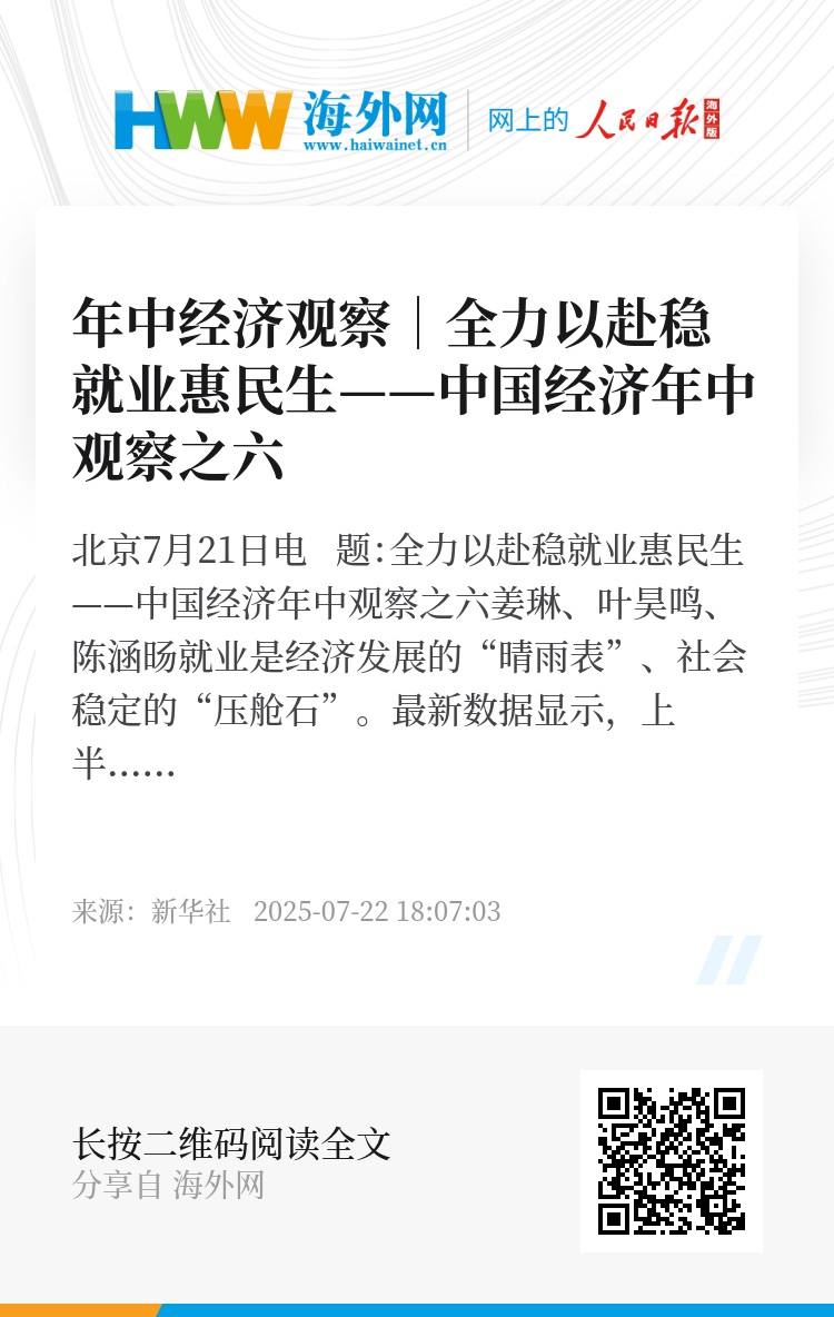 新华社北京7月21日电 题:全力以赴稳就业惠民生——中国经济年中观察之六