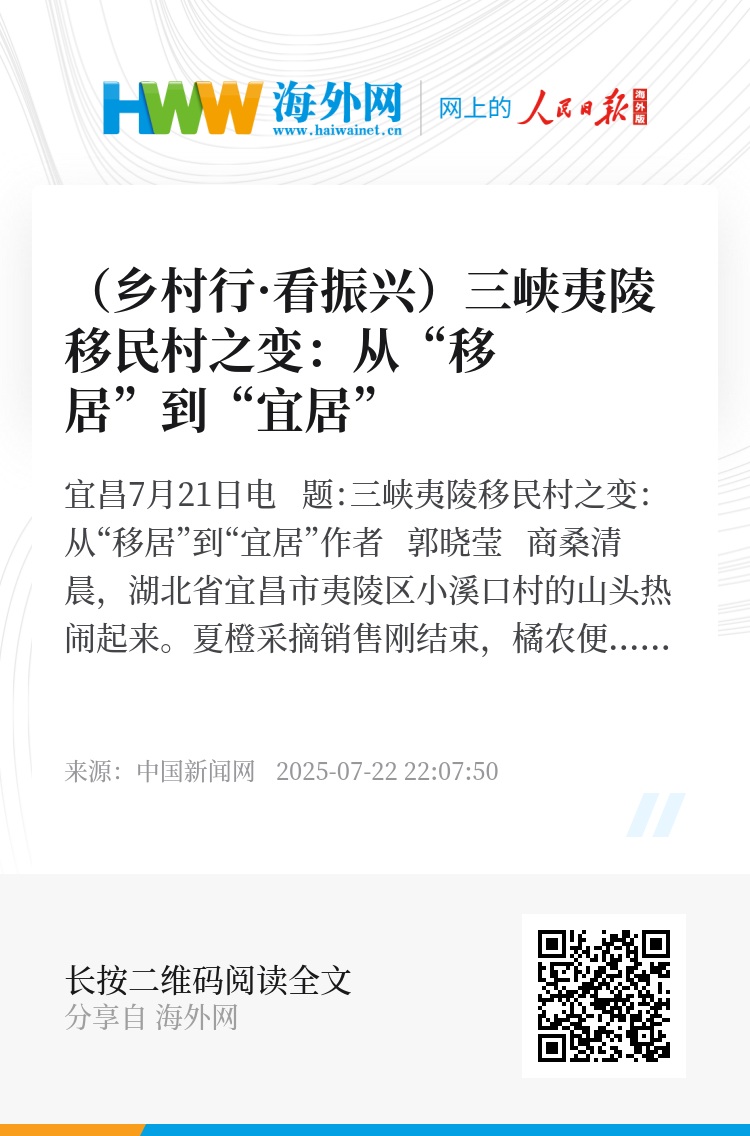 中新网宜昌7月21日电 题:三峡夷陵移民村之变:从“移居”到“宜居”