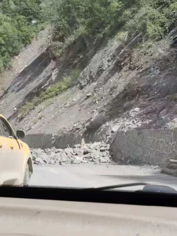 通组路被暴雨冲下的石块阻断(受访者供图)
