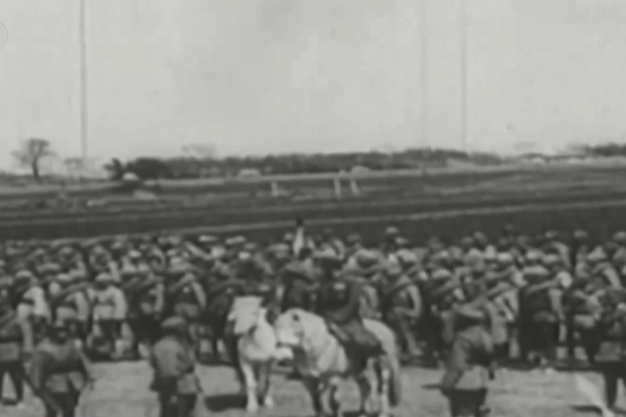这段影像,是当年战地记者在闸北青云路一带拍摄的。战斗中,19路军60师119旅1团1营营长陈正伦头部中弹,他包扎完伤口后,推开劝阻的士兵,继续冲上阵地指挥战斗,但没过多久,陈正伦再次被日军的子弹击中,当场阵亡。