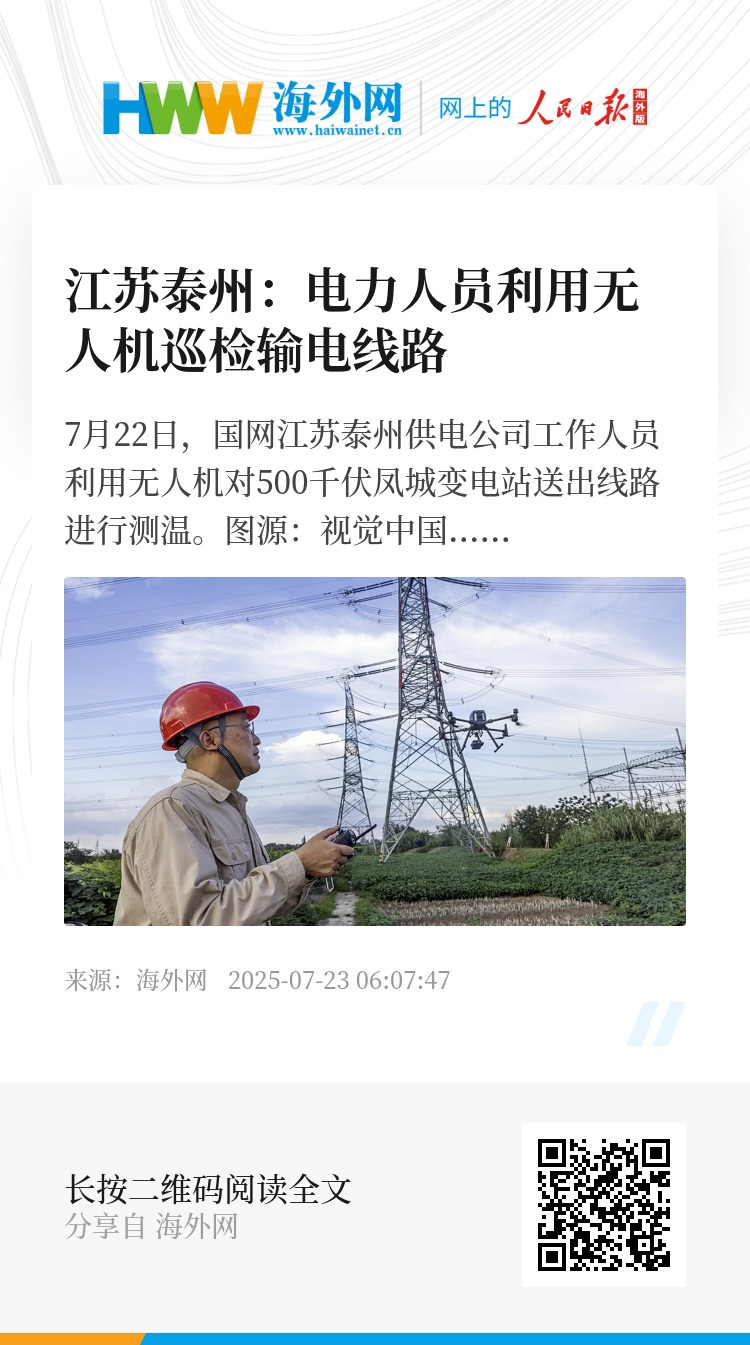 32880899,.江苏泰州:电力人员利用无人机巡检输电线路,.2025-07-23 06:58:47,.204441,.张荣耀、卢思宇