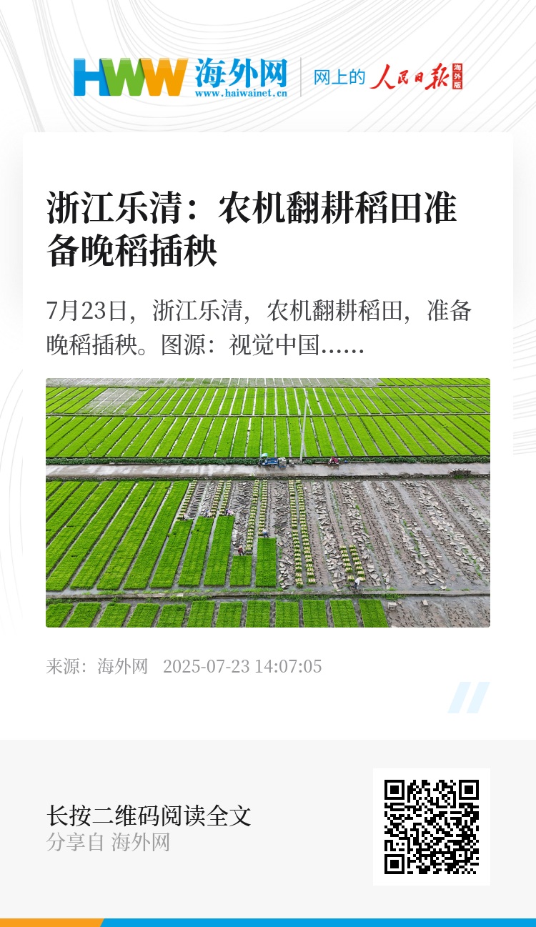 32881051,.浙江乐清:农机翻耕稻田准备晚稻插秧,.2025-07-23 14:40:05,.204309,.陈亚楠、张荣耀