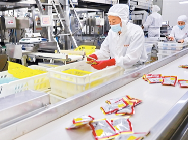 近年来,河北省秦皇岛市海港区大力发展深加工产业,积极探索跨境电商新模式,实现板栗深加工产品全年不间断生产、销往海外市场。图为在位于海港区海滨路街道的秦皇岛富滋食品有限公司内,员工在板栗仁加工生产线上忙碌。
