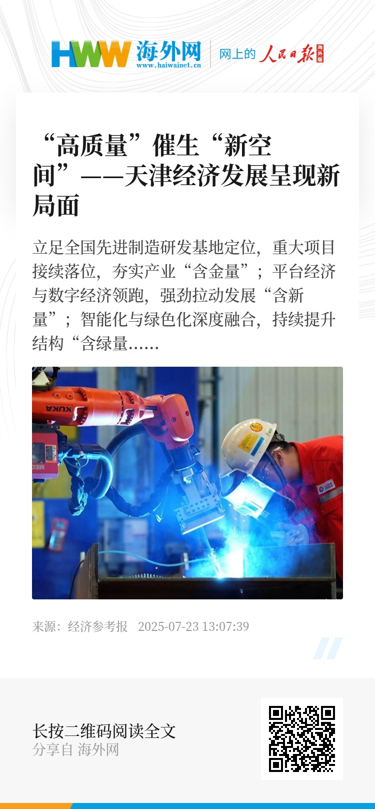 “十四五”规划收官之年,天津交出年中答卷:上半年GDP增速同比增长5.3%,经济继续保持韧性与活力,传递出稳中向优的信号。三大引擎协同发力,向着高端化、智能化、绿色化的方向加速迈进,“高质量”新态势拓展出发展“新空间”。