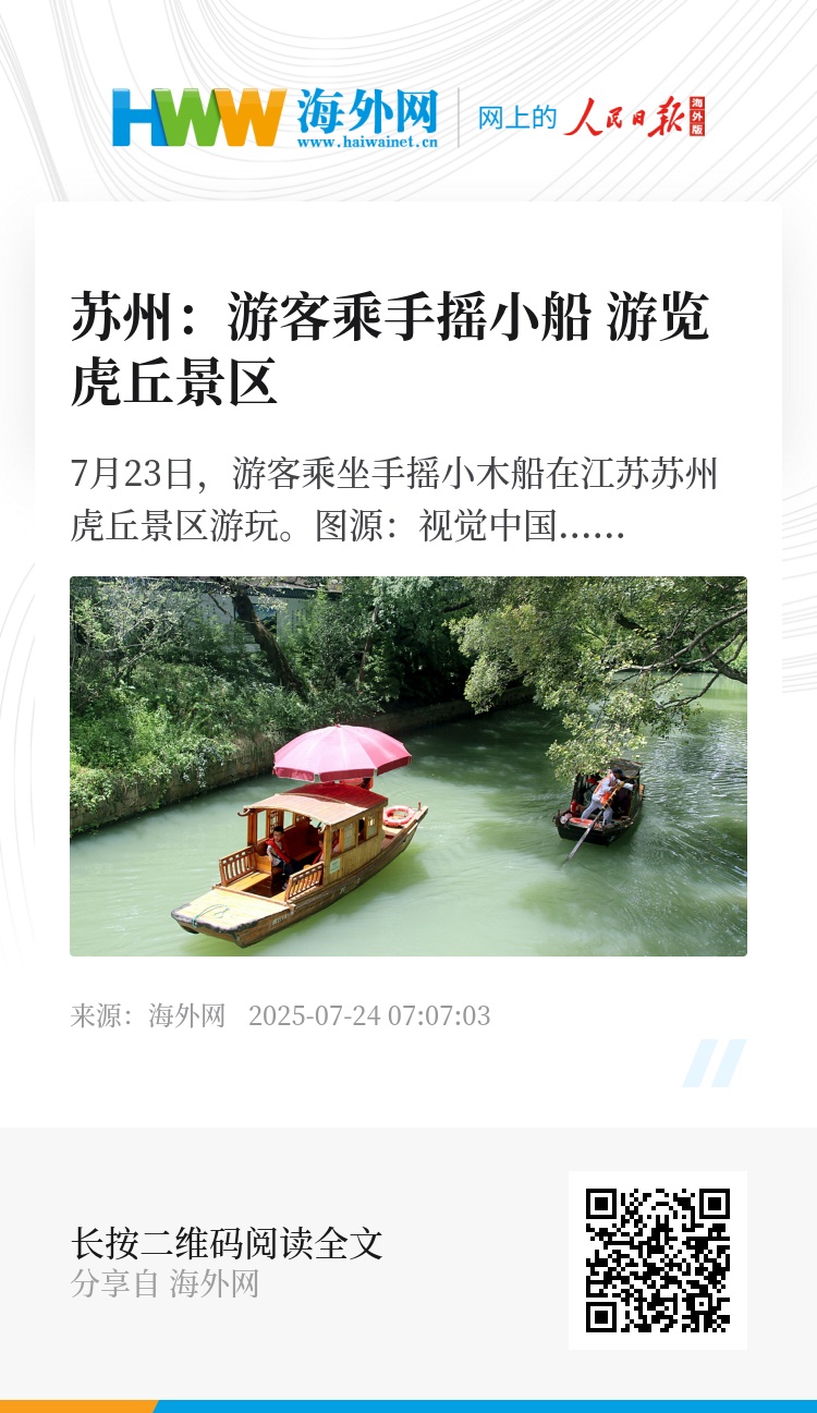 32881184,.苏州:游客乘手摇小船 游览虎丘景区,.2025-07-24 07:03:03,.204441,.张荣耀、张霓