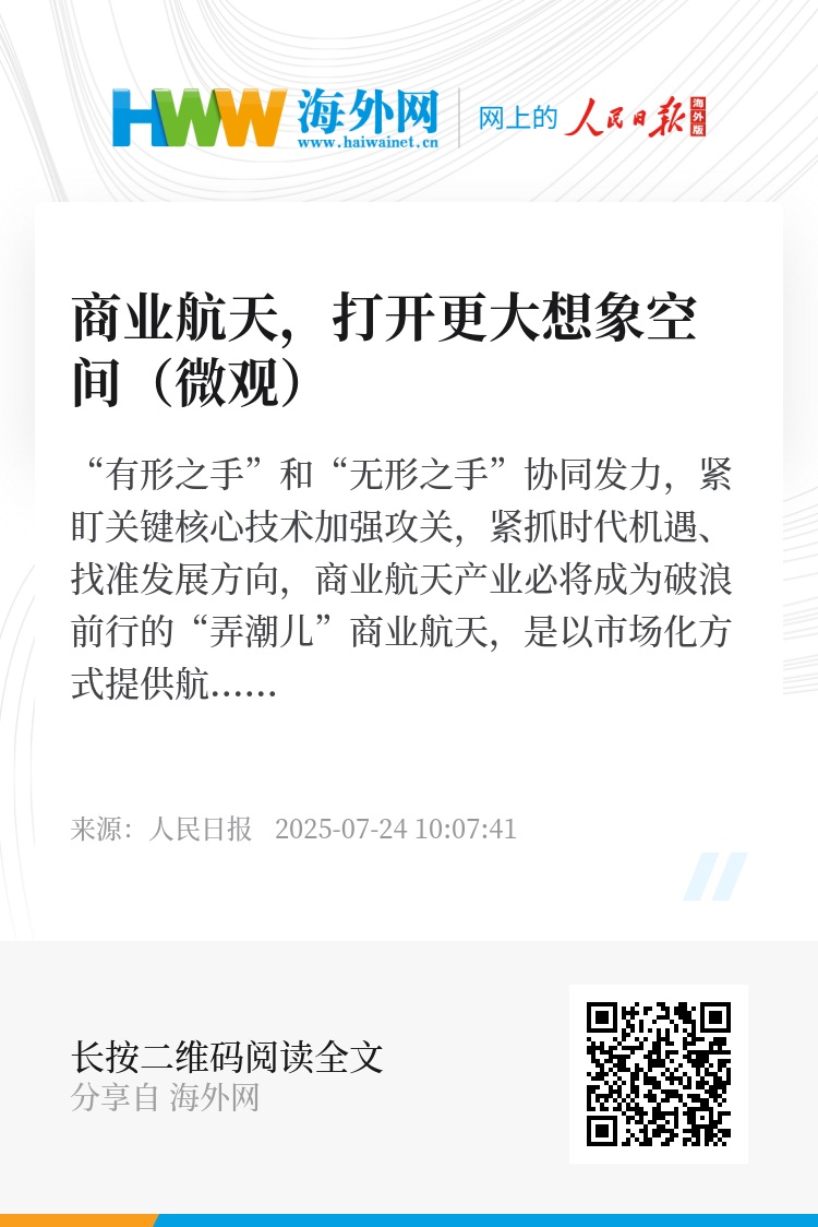 如今,越来越多的社会资本涌入商业航天领域,“流水线上造卫星”正逐步成为现实。以更大视野看,任何一项“高精尖”,都不仅需要短期的攻关冲刺,更需要长期主义的坚持。必须看到,我国商业航天起步较晚,面临着全球快速发展带来的竞争压力。发展商业航天,只有掌握关键技术,形成核心竞争力,才能在全球航天领域获得市场份额和话语权。“有形之手”和“无形之手”协同发力,紧盯关键核心技术加强攻关,紧抓时代机遇、找准发展方向,商业航天产业必将成为破浪前行的“弄潮儿”。