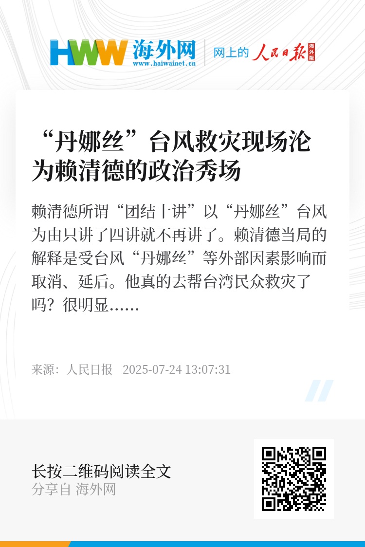 救灾投入本就严重不足,救灾行动一直低效缓慢,赖清德还要搞政治算计、区别对待,硬是把“四讲”中耸人听闻的“杂质说”变成了现实。此次台风给台湾中南部多县市香蕉、文旦柚等种植业带来惨重损失。其中,蓝营执政的云林县遭受重创。然而,赖清德却将其排除在救助之外。打压在野力量不择手段,团结社会各方虚情假意,什么是狭隘,什么是冷血,赖清德作了生动真实演绎。可以预见,这次是通过台风做文章,未来赖清德还将借助更多事由和场合剪除政治异己、清洗普通民众,实现打掉“杂质”的幻想。“绿色独裁”“绿色恐怖”对台湾社会的危害,将比台风更甚十倍百倍!