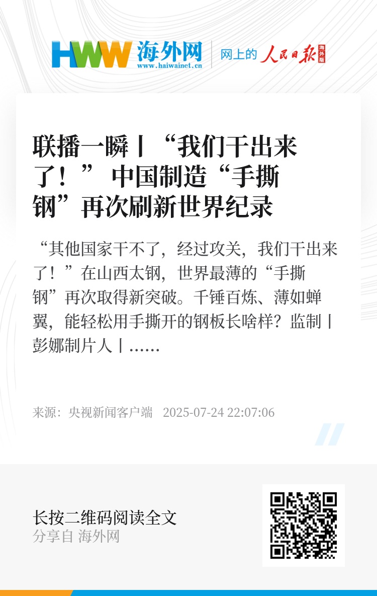 “其他国家干不了,经过攻关,我们干出来了!”在山西太钢,世界最薄的“手撕钢”再次取得新突破。千锤百炼、薄如蝉翼,能轻松用手撕开的钢板长啥样?
