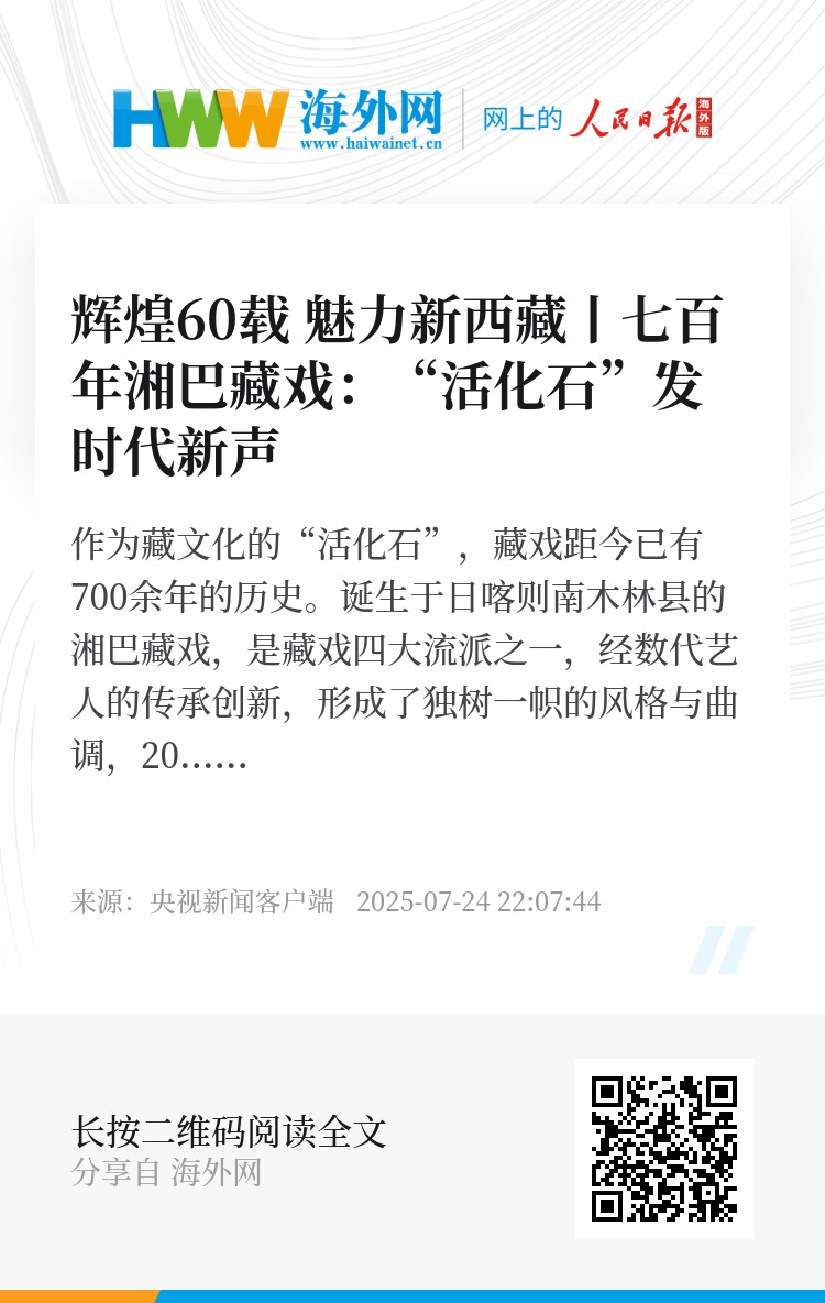 作为藏文化的“活化石”,藏戏距今已有700余年的历史。诞生于日喀则南木林县的湘巴藏戏,是藏戏四大流派之一,经数代艺人的传承创新,形成了独树一帜的风格与曲调,2006年被列入第一批国家级非物质文化遗产名录。跟随记者镜头,走进湘巴藏戏的故乡,一起来聆听来自雪域高原的独特戏腔,感受藏族群众对于它们的热爱与传承。