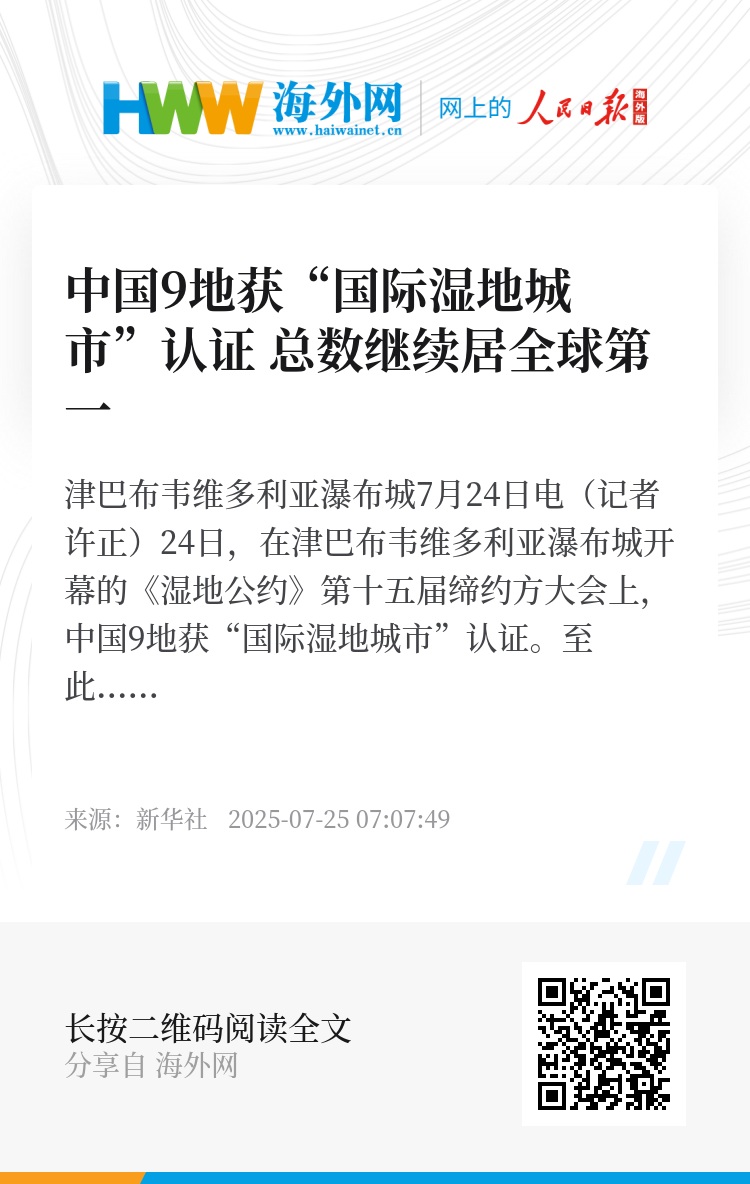 据国家林业和草原局介绍,被《湿地公约》认证为“国际湿地城市”,是城市湿地生态保护的重要成就。获认证城市不仅湿地资源丰富、景观独特,其湿地生态系统及生物多样性也得到良好保护。