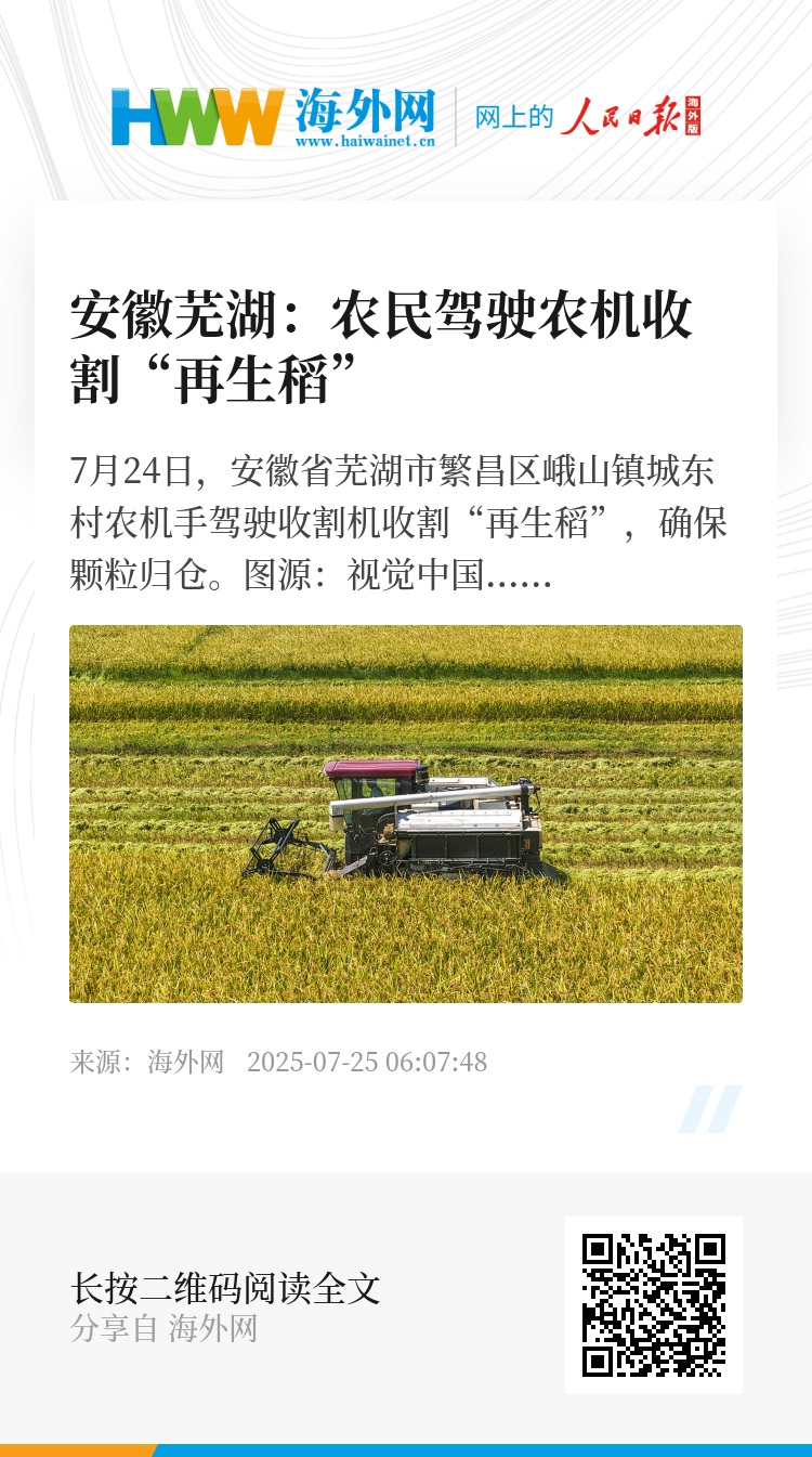32881461,.安徽芜湖:农民驾驶农机收割“再生稻”,.2025-07-25 06:54:48,.204441,.张荣耀、张霓