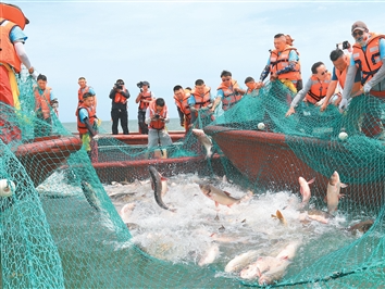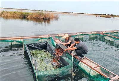 淡水湖中捕鱼忙