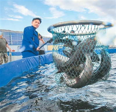 “为了保证三文鱼的新鲜,我们每天按照订单捕捞。最近一段时间,是巩留县养殖加工基地的捕捞季,几乎天天有订单!”该公司董事、副总经理丁娅瑛告诉记者。