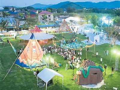 浙江莫干山举办消夏夜市,吸引了众多游客。