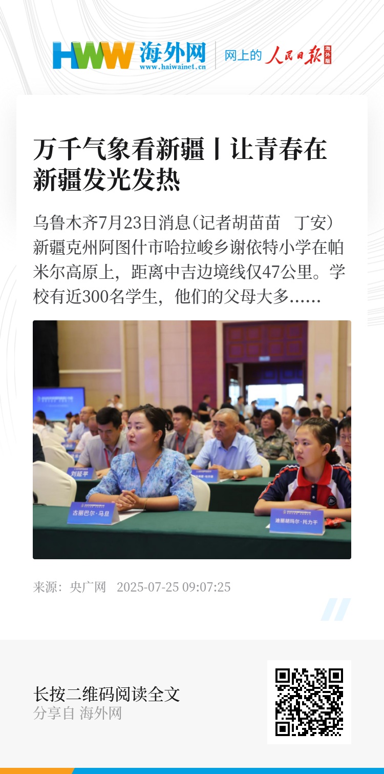 央广网乌鲁木齐7月23日消息(记者胡苗苗 丁安)新疆克州阿图什市哈拉峻乡谢依特小学在帕米尔高原上,距离中吉边境线仅47公里。学校有近300名学生,他们的父母大多数是护边员,长年在海拔4000多米的中吉边境线上巡逻戍边,一走就是十天半个月。