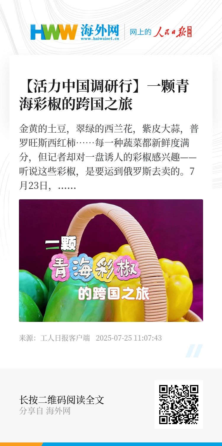 青海省农业农村厅种植业管理处处长刘得国告诉记者,乐都蔬菜出口最初是经销商在运作,近年来省委、省政府愈发重视冷凉蔬菜的生产经营,提供了大量的政策支持,组织召开经贸洽谈会、彩椒登上中欧班列等,让乐都蔬菜从无序的出口到有序的出口输出。(工人日报客户端记者毕振山 武俊豪 邢生祥 兰德华)