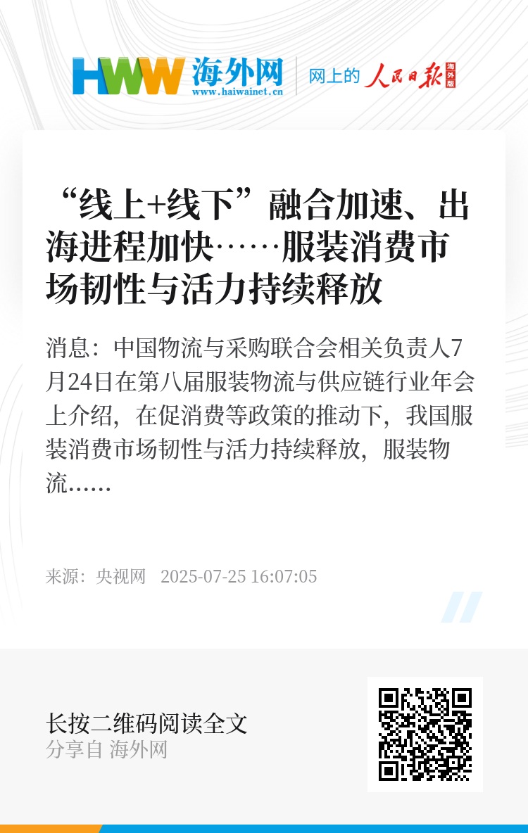 中国物流与采购联合会相关负责人表示,面对服装行业线上线下全渠道融合加速、季节性波动显著、高退货率常态化的行业特征,物流服务要更多地融入到生产端与销售端,实现全链路融合。同时,要完善跨境退货物流服务供给,全面增强物流服务对服装出海的支撑能力。