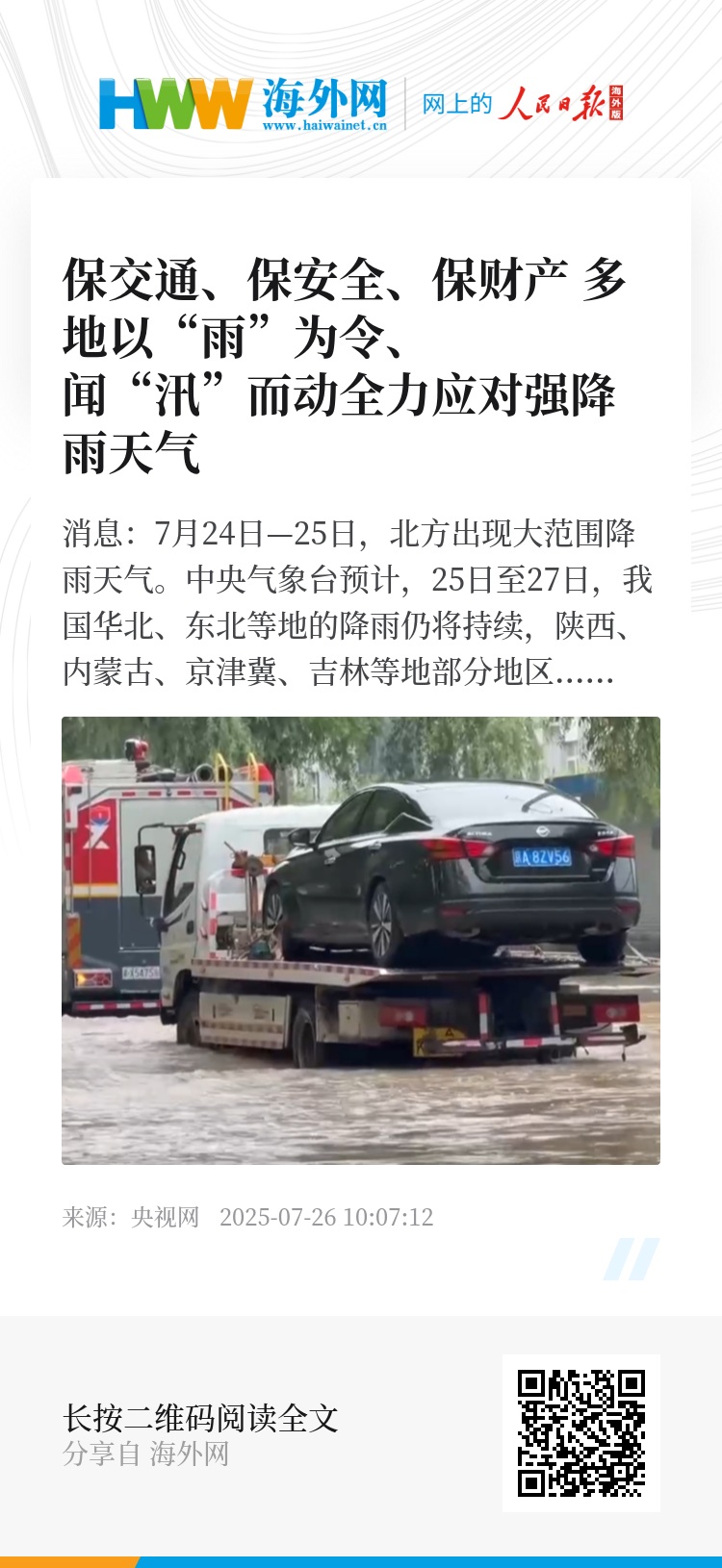 据气象部门监测,四平及长春南部部分区域预计26日仍将有大雨或局部暴雨,极易引发城市内涝,提醒市民关注预警信息。