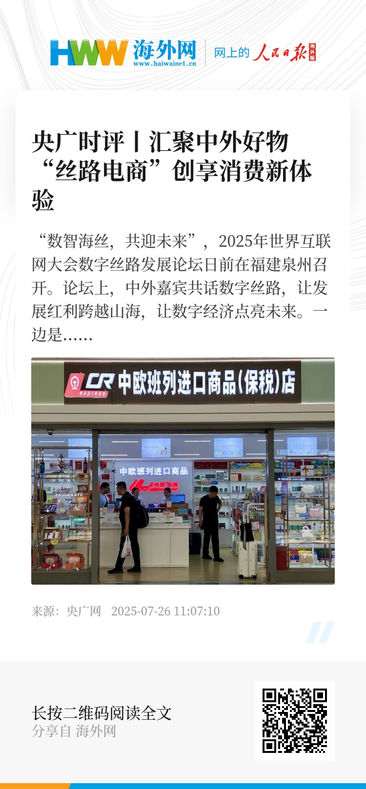 物流通达处,众多好物丰饶了中外民众的消费体验;键盘轻点时,万里之外的文化音符已成为生活乐章。当古老丝路遇见数字文明,当直播带货链动全球市场,这场“数实融合”浪潮,正努力以全新姿态重塑全球经贸格局,书写人类命运共同体的新篇章。(央广网特约评论员 秦川)
