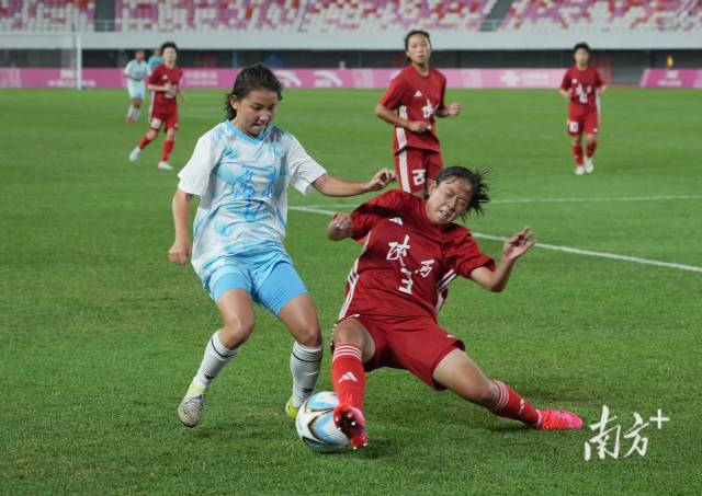 5月30日晚,广东省人民体育场迎来十五运会女足(U16)的比赛,来自全国各地的小花们,在崭新的体育场上竞逐。