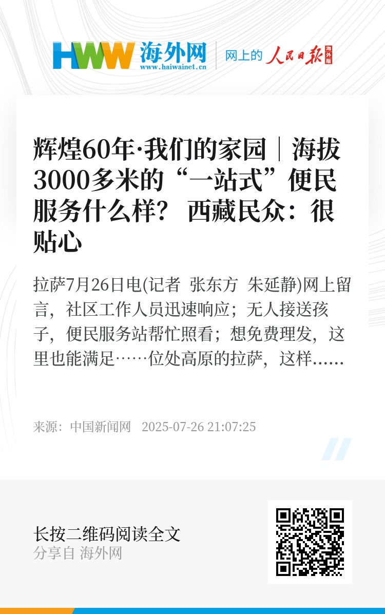 中新网拉萨7月26日电(记者 张东方 朱延静)网上留言,社区工作人员迅速响应;无人接送孩子,便民服务站帮忙照看;想免费理发,这里也能满足……位处高原的拉萨,这样的便民服务站早已融入百姓的日常生活。