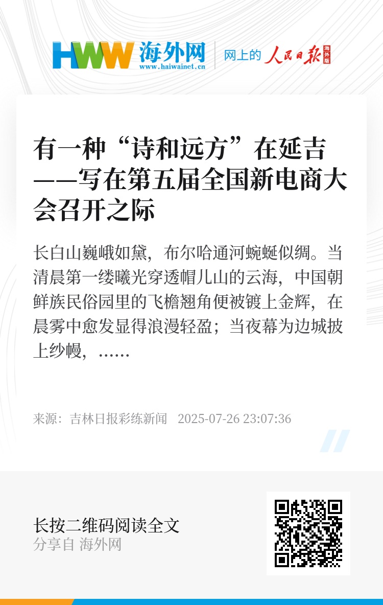 跻身 “百强”,是奋斗镌刻的阶段性勋章,更是逐梦新程的全新起点。第五届全国新电商大会的如约而至,正为这座浸润诗意的边城注入澎湃新动能。此刻的延吉,正以更优的标准、更暖的热忱,深情回应着人们对这座城市的无限期待——让每一栋民居都生长成风景的注脚,每一条街巷都流淌着文化的温度,更让每一位踏足此地的来宾和游客心底都深深烙印:“延吉不远,诗意很近。”